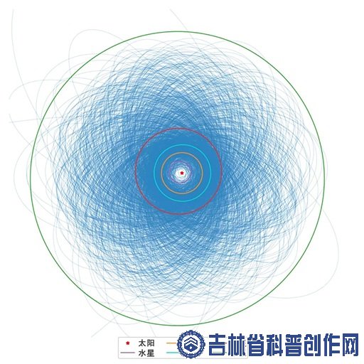 其中,直径在 140m 以上且与地球最小交汇距离在 0.05au 以内的近地小行星被称为潜在威胁小行星(PHAs),这是小行星防御的主要目标,目前已发现的 2320 颗潜在威胁小行星的轨道分布图丨紫金山天文台/胡寿村