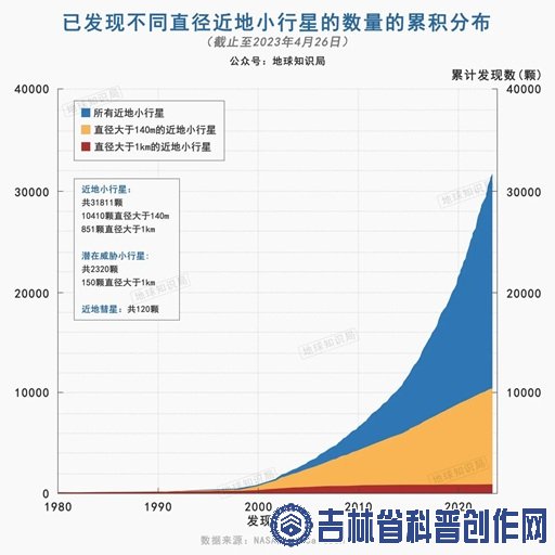 目前,我们对直径大于 1km 的近地小行星的观测较为完备;还有大量直径小于 1km 的近地小行星未被观测到,未被观测到的小行星中存在大量潜在威胁的小行星。