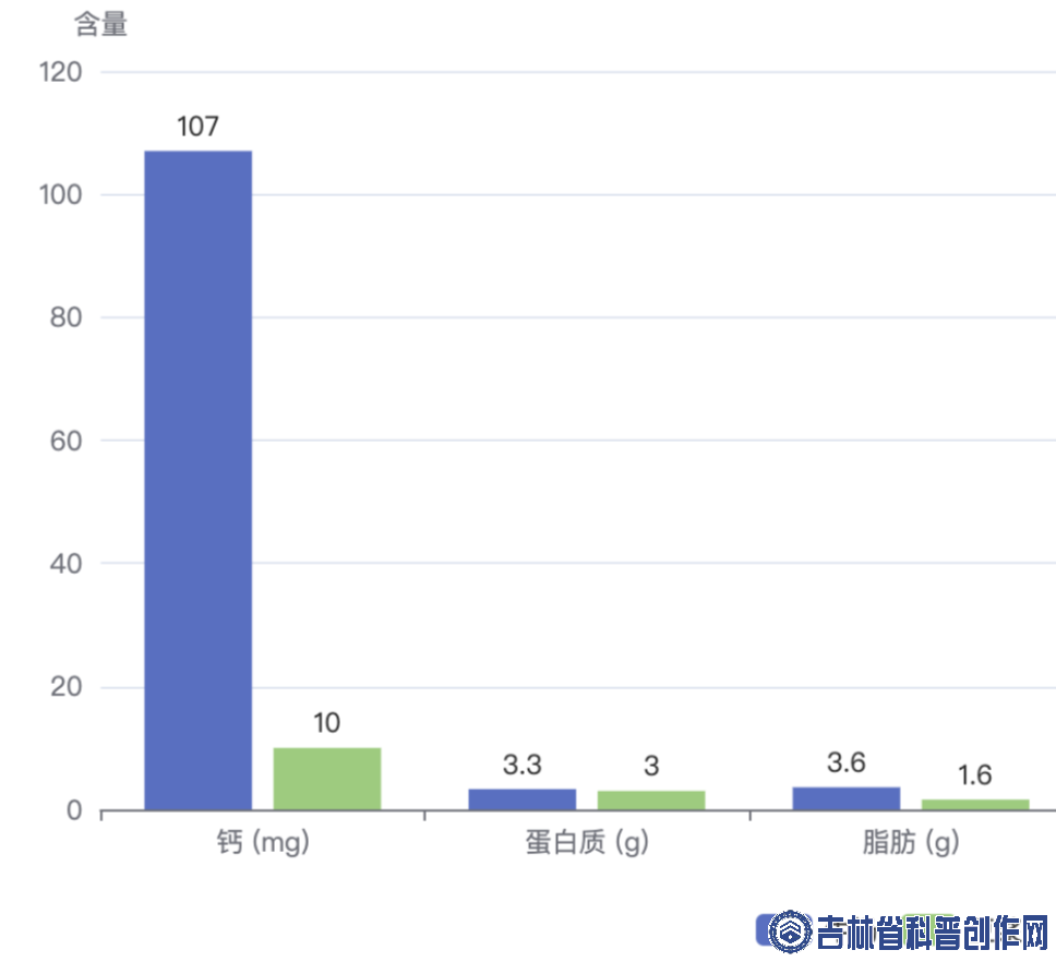说到补钙,很多人首先想到的就是牛奶。根据《中国食物成分表(标准版)》的数据显示,每 100 克牛奶中钙含量约为 107 毫克[1]。而普通豆浆,钙含量仅约 5~10 毫克,二者差距超过十倍[2],牛奶中钙的优势非常明显。另外,牛奶的钙磷比例恰当,并且还含有促进钙吸收的维生素 D 和乳糖,更容易被人体吸收利用[3]。